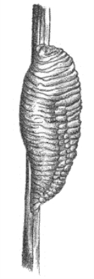 卵在六月里孵化,一枚桑螵蛸,有一百以上幼虫从里面出来。