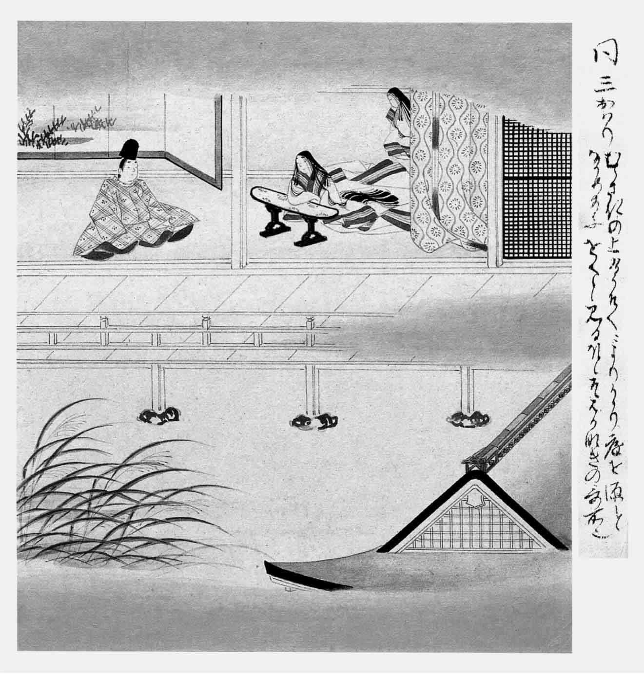 如果源氏将心中的哀情悉数写出,前太政大臣读后定会责备他感情脆弱。源氏知道他的性情,所以回信写得不很感伤,只是向他表示感谢:“屡承殷勤慰问,实不敢当”云云。