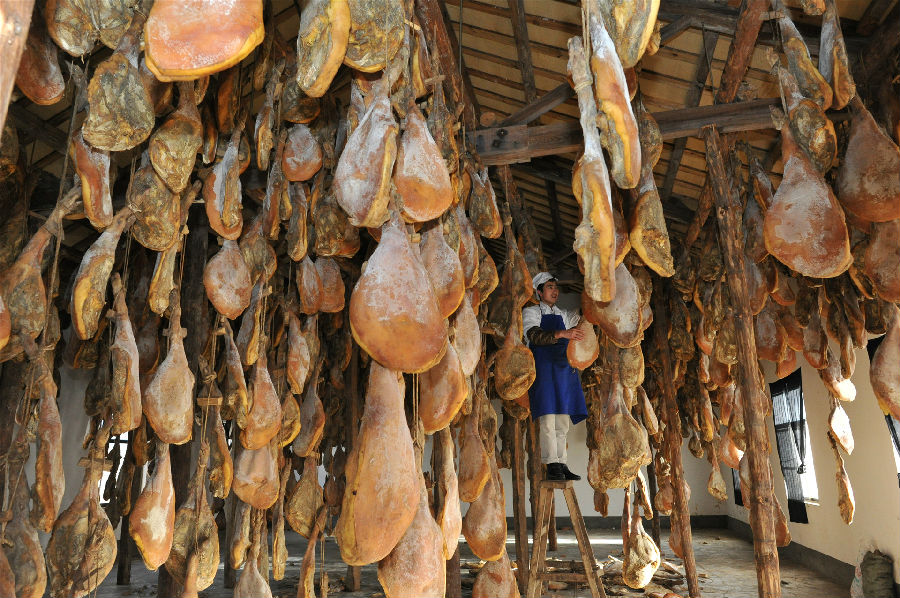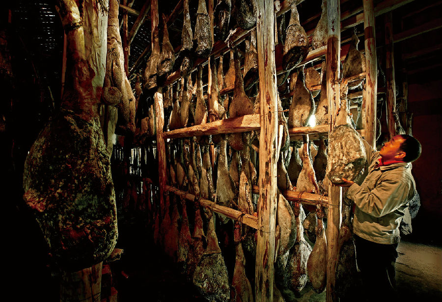 宣威火腿之所以出名,其中的秘诀就在于独特的制作技艺和得天独厚的地理气候环境。宣威处于云贵高原的过渡褶皱地带,冬春季节受昆明准静止锋作用,形成了多种气候带并存的低纬度高原季风气候,成就了火腿自然发酵成熟的最佳温湿度,形成天然的大工厂。