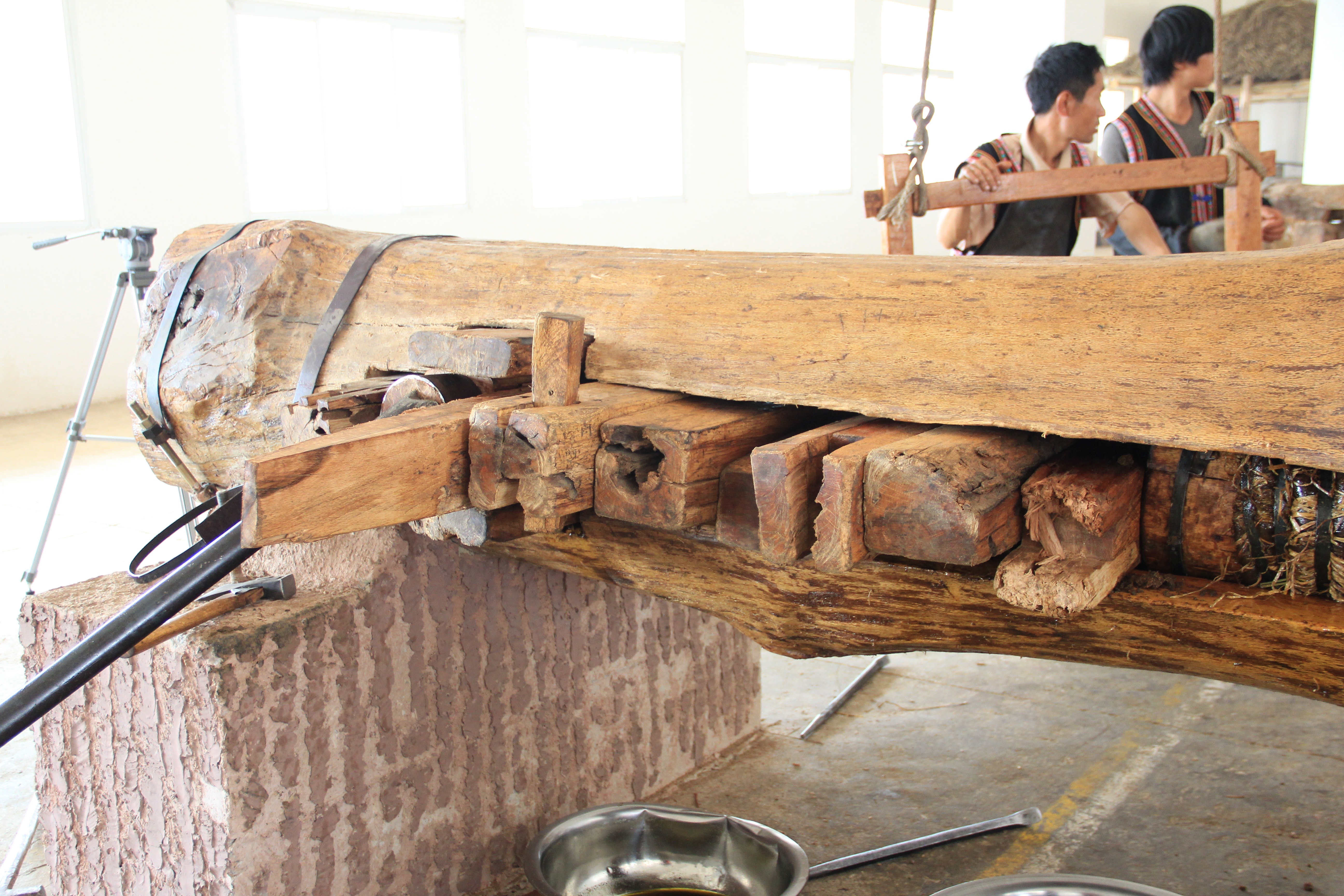 撞锤。撞锤由坚硬的树木制成,3米左右长,30公分左右粗细,从上至下位置,凿通一个长形孔,宽约5公分,长约16~20公分。