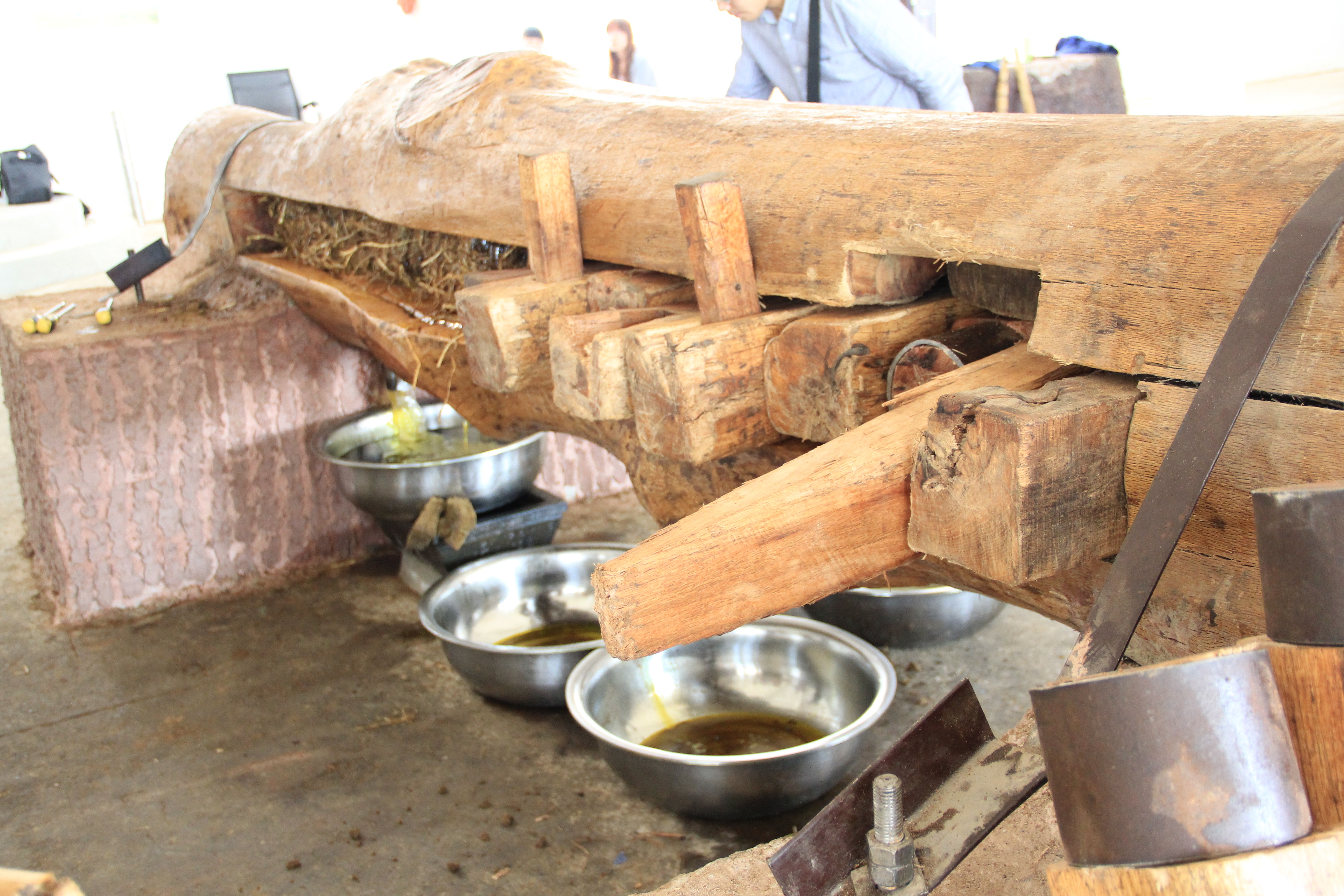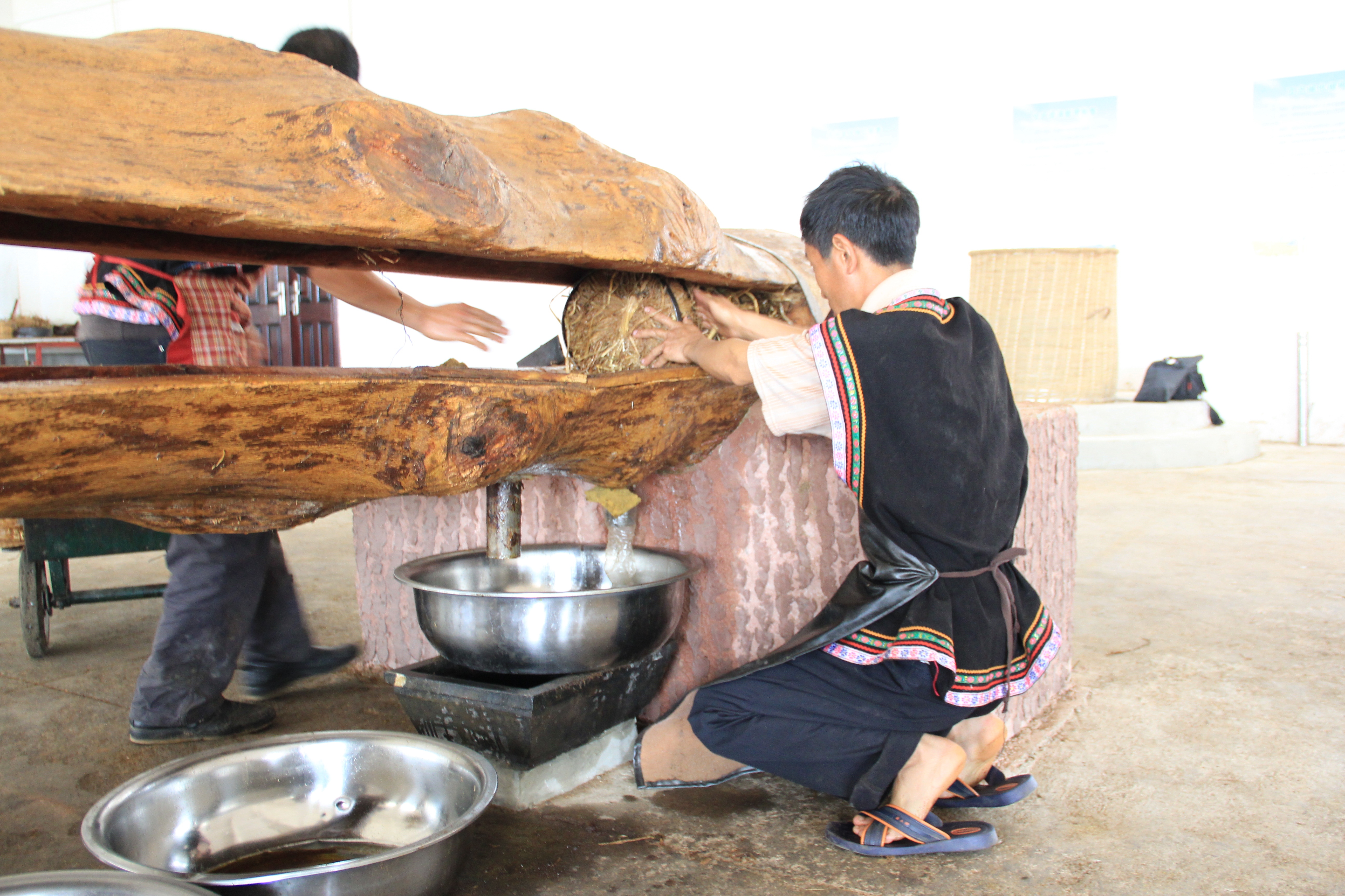 古法榨油有四大工序,即石磨碾压、木蒸笼热蒸、谷草篾箍包饼、木榨取油。“依鲁古法榨油坊”是经罗丽江改良后开设的古法榨油技艺传承作坊,其榨油技艺得到完美传承并得以改进完善,既有古法榨油的原始风貌,又内含科技创新的独特工艺。
