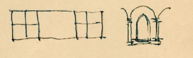 圣器室中,第二层首次出现双突出结构。布拉曼特在罗马的和平圣母教堂的建造中使用了这一建造方式。