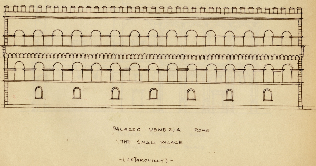 勒塔鲁伊认为此建筑出自其他建筑师之手。这是一处有围墙的庭院,通过一座桥与卡比托利欧山(Capitoline)相连,比大宫殿建造得要晚一些。人们认为它是由西斯科特四世和他的建筑师巴乔·蓬泰利建造的。为了证明这一说法,将它与圣阿波斯托洛教堂(S.S.Apostolo)作比较,可以证明这是巴乔·蓬泰利的作品。