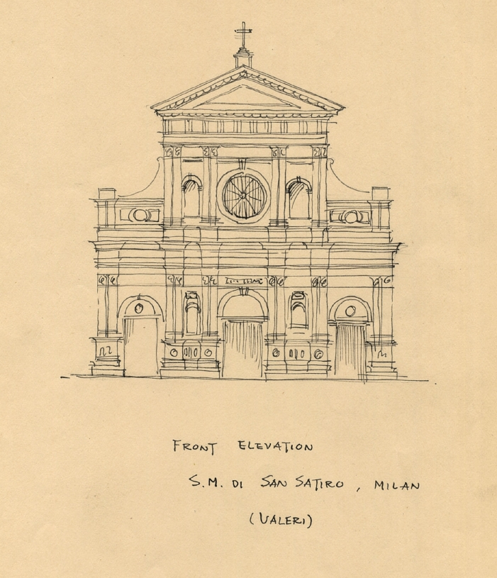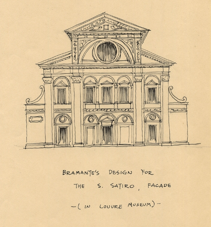 下页图为布拉曼特为米兰圣萨蒂罗圣母礼拜堂设计的正立面图