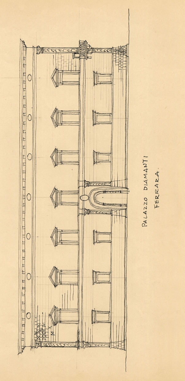 下页图为费拉拉迪亚曼蒂府邸立面图