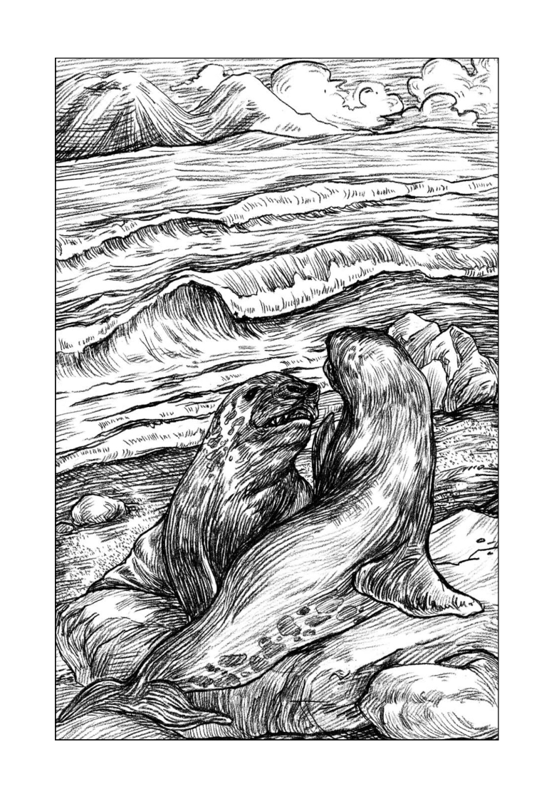 此时,海牛们便分开行动,各处去吃鲜美的海草。这个地方算得上是科蒂克见过的最美最安宁的地方了,岩石绵延数英里,简直是海豹们繁殖的绝佳场所;还有玩耍的场所;海豹们在翻腾的巨浪上跳跃是再适合不过的了。科蒂克充分感受过这里的水后,十分确定这里从来没有人来过。