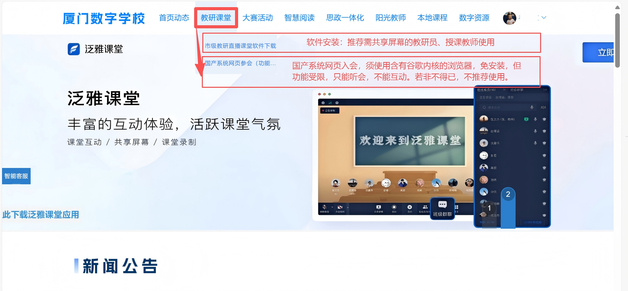 点击【教研课堂】下属二级栏目【国产系统网页参会(功能受限)】