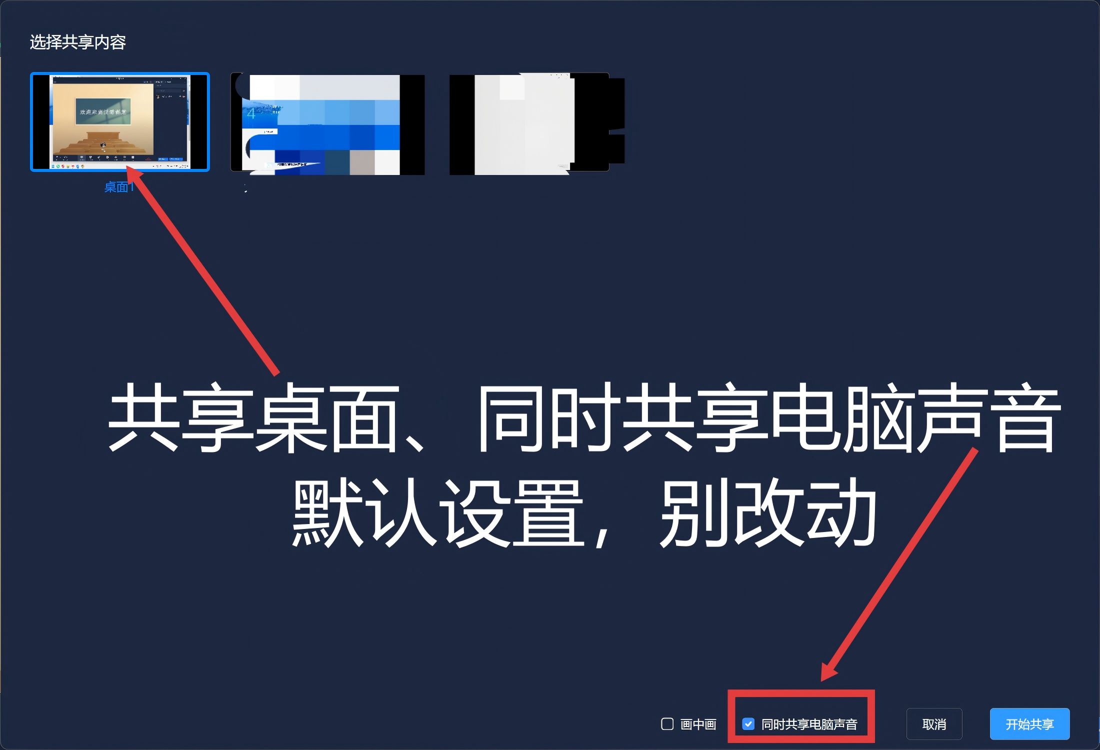 需要共享电脑屏幕的老师,请点击共享屏幕: