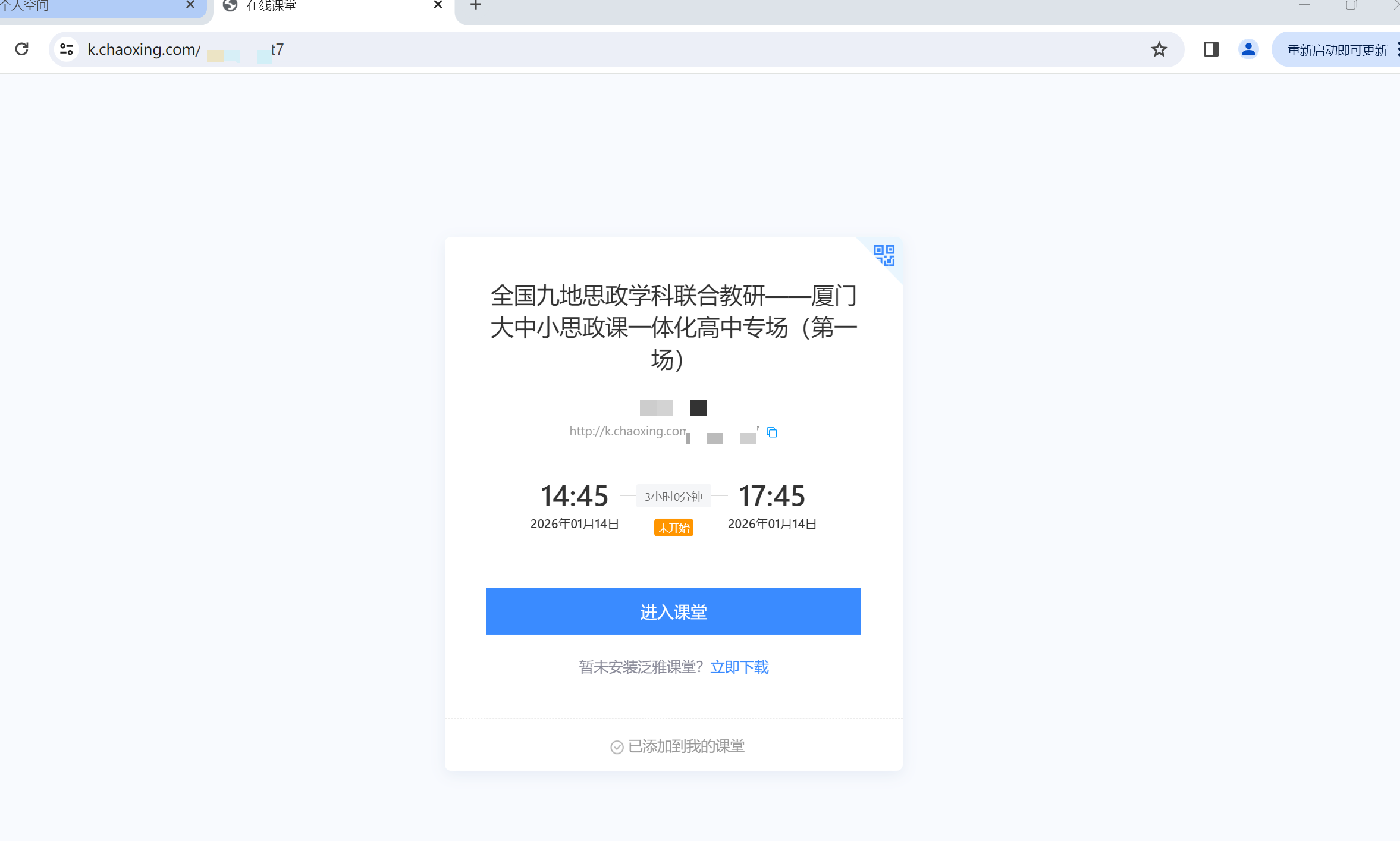 如您收到了课堂链接,请先确保已安装超星课堂客户端,浏览器打开课堂链接,点击“加入课堂”按钮,验证成功后将进入课堂
