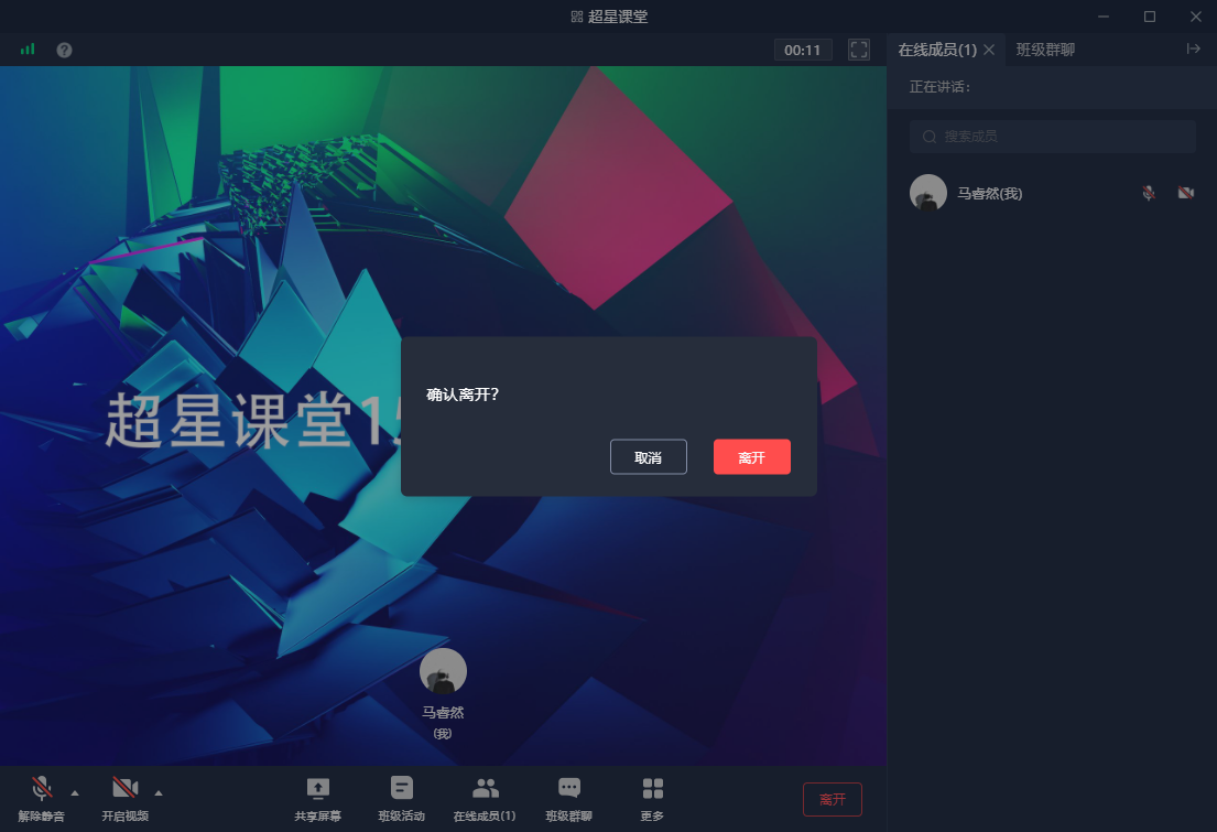 当您的身份为学生/学员:当您身份为学生/学员时,您点击以后可以选择离开,如果教师开启了允许推出班级和群聊开关,则可以根据情况勾选退出班级和群聊,退出后将不再收到互动和课堂活动。