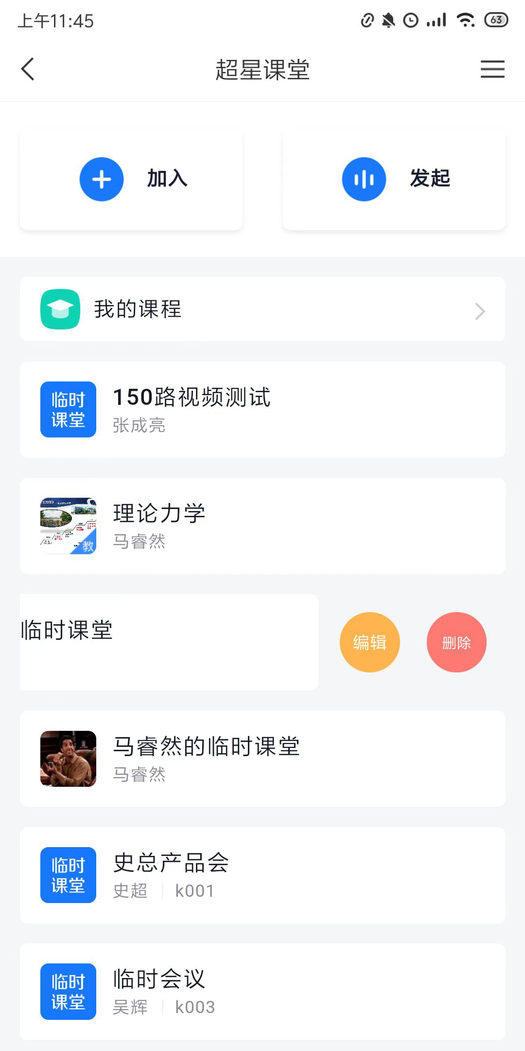 【删除】可以删除我教的课堂,把我学的课从我的课堂列表中删除。
