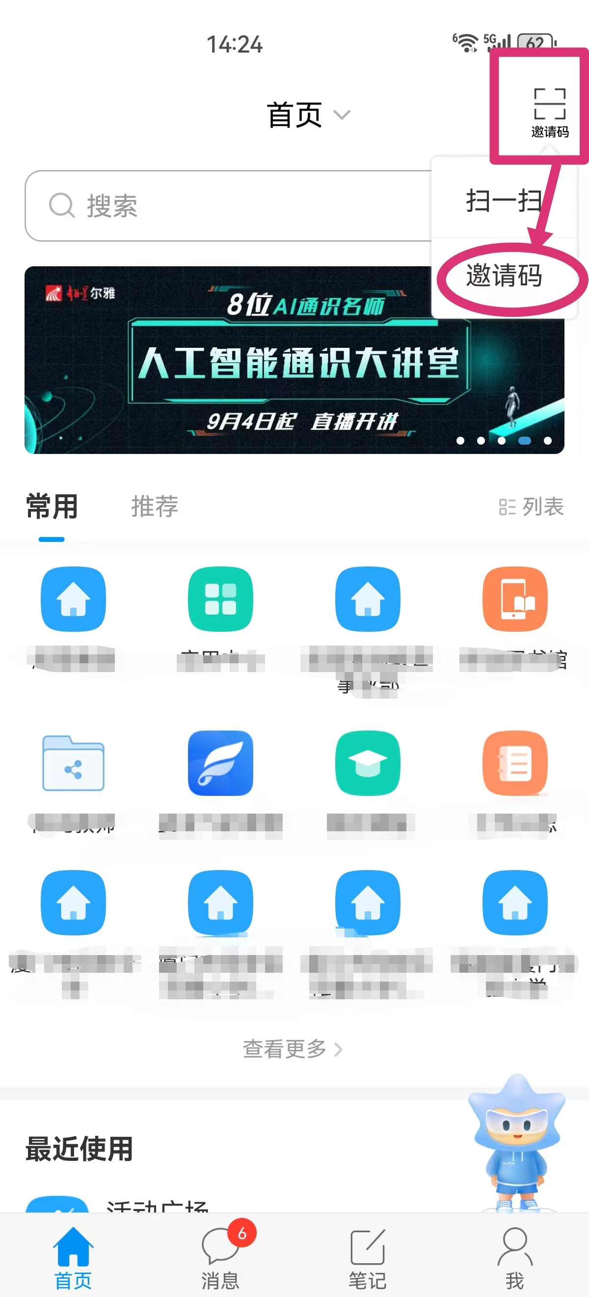 学习通APP,成功登录后,点击右上角邀请码,输入“xmjky2024”,