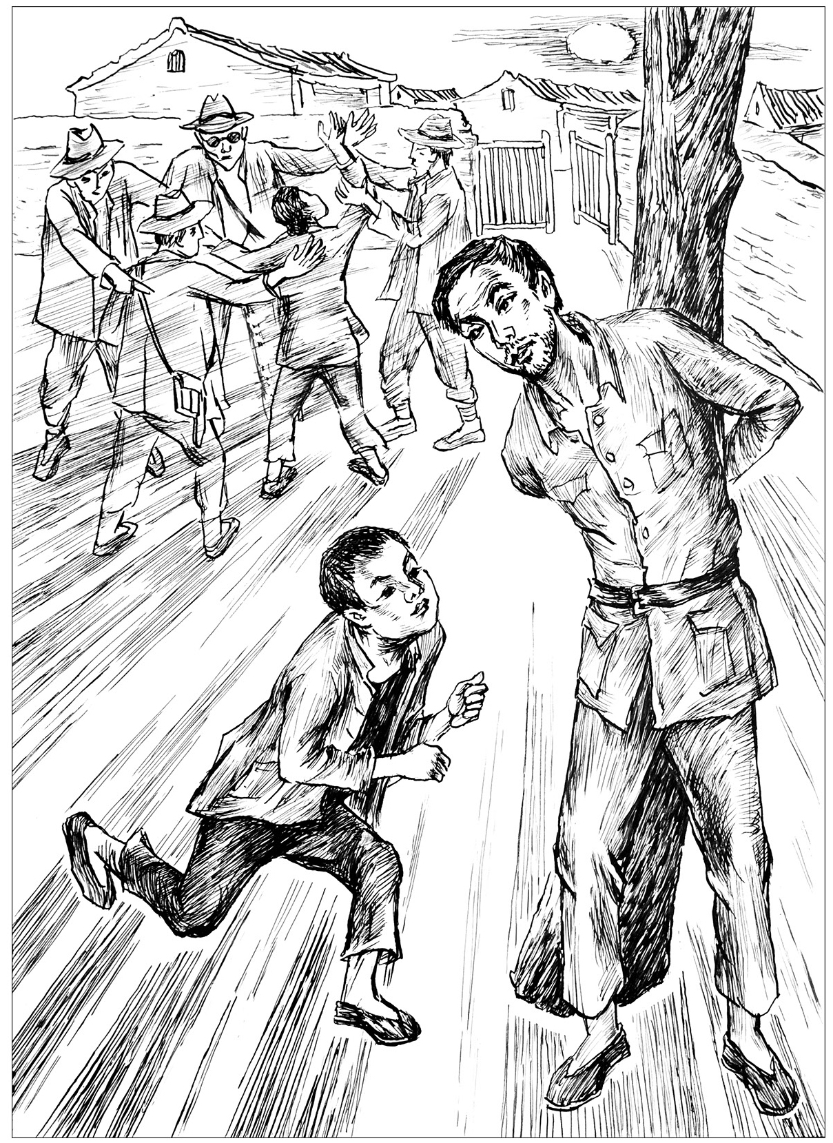 特务们见队长被拉住,都围上去,有几个上去撕掳[25]雨来妈妈。趁这时候,雨来凑到杜绍英跟前。杜绍英低声说了一句:
