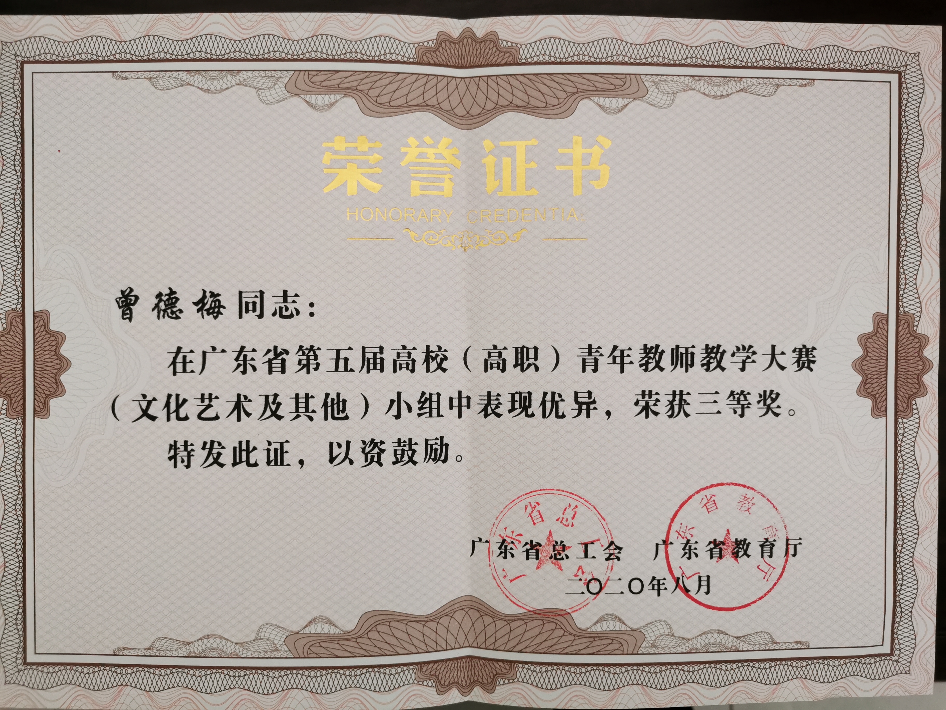 2.广东省第五届高校(高职)青年教师教学大赛(曾德梅)