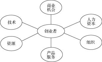由创业的概念可知,创业的要素包括创业者、商业机会、技术、资源、人力资本、组织、产品服务等几个方面,如图3-1 所示。