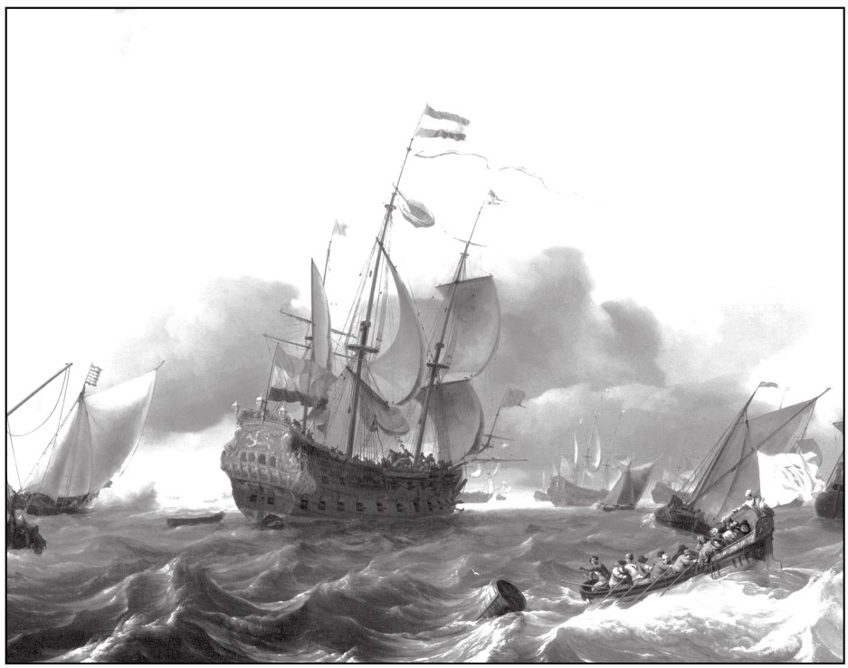 每一个新资本最初都是通过货币的流通过程,从商品市场、劳动市场或货币市场上转化而成。如16~17世纪的国际贸易以中国商品为主导,仅葡萄牙商人就会在每年两次的广州定期交易会上带200万两以上的银子订购货物,然后由广州经澳门,把中国商品源源不断地输出到世界各个国家和地区。随着世界市场的扩大,资本的现代生活史也随之揭开。图为当时葡萄牙商人的船队。