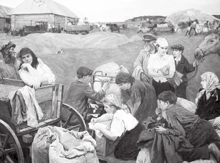 实物地租是封建地租的形式之一,是封建土地所有者凭借土地所有权强迫租佃农民交出自家生产的农产品的一部分,即无偿占有农民的一部分剩余劳动。在形式上,实物地租主要是农产品,有时也可以是家庭手工业产品。图中,农民正在向地主交纳实物地租。