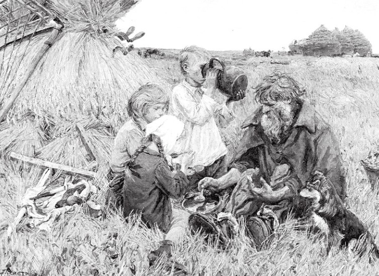 英国圈地运动[2]使大量小土地占有者失去赖以谋生的土地,同时,土地私有权得以在法律体制的基础上确立,经济的发展不再受传统道德规范的束缚,所以说,圈地运动对于消除英国自然经济的残余起了重大的推动作用。图为当时农民艰苦生活的写照。