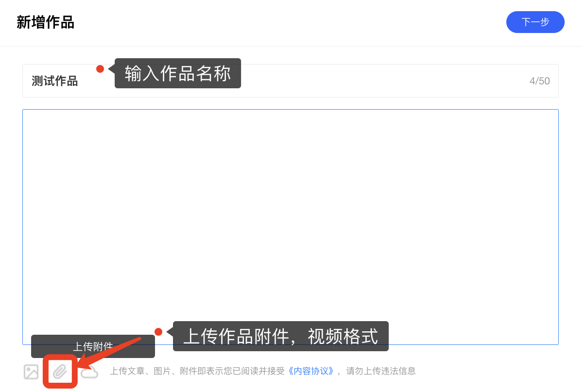 (3)输入作品名称,提交作品附件