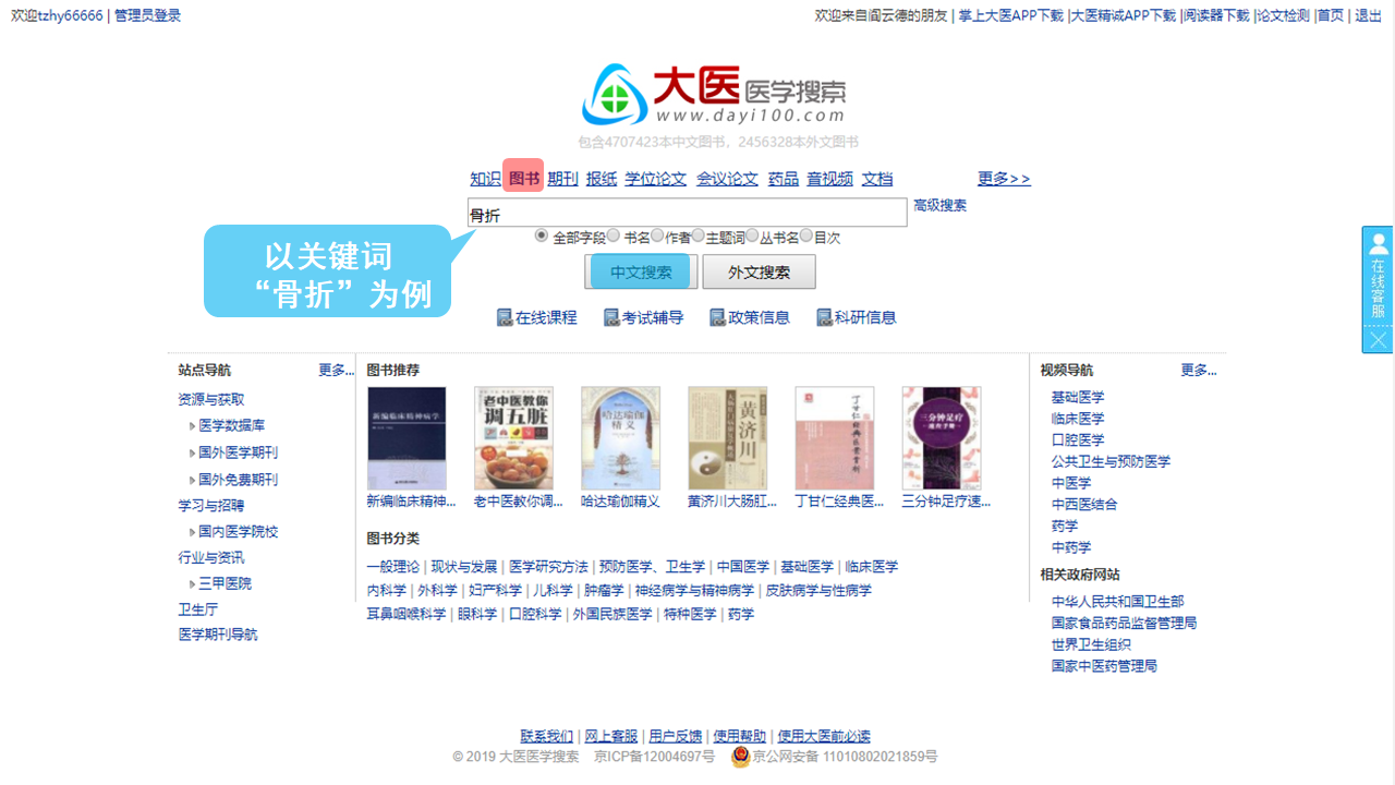 选中【图书频道】— 输入关键词 — 点击【中文搜索】