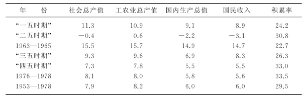 最后,增长速度是在效率十分低下的水平上实现的。由于本章第3节将专门讨论传统经济体制下的效率问题,这里就不展开了。