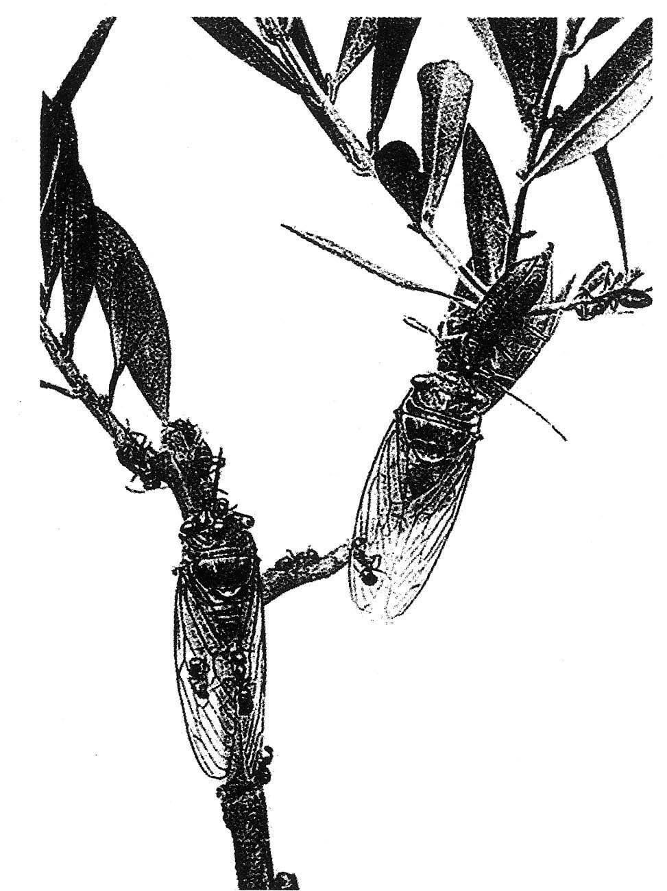 大家都看到了,事实彻底地把寓言臆想的角色给调换过来了。毫不客气、抢劫时决不退缩的求食者是蚂蚁,而甘愿与受苦者分享甘露的能工巧匠是蝉。还有一点也足可以把颠倒的情况调整过来。经过五六个星期漫长的欢唱之后,歌手生命耗尽,从大树高处跌落下来。它的尸体被烈日晒干,被行人的脚踩踏。时刻在寻找战利品的蚂蚁撞见了它。蚂蚁随即把这美食扯碎,肢解,弄烂,搬到自己那丰富的食物堆中去。甚至还可以看到蝉虽已奄奄一息,但翼还在灰土中颤动,可是一小队蚂蚁便拥上去向各个方向拉扯它,撕拽它。此时的蝉伤心至极。看了这同类相残之后,就不难看出这两种昆虫之间到底是什么关系了。