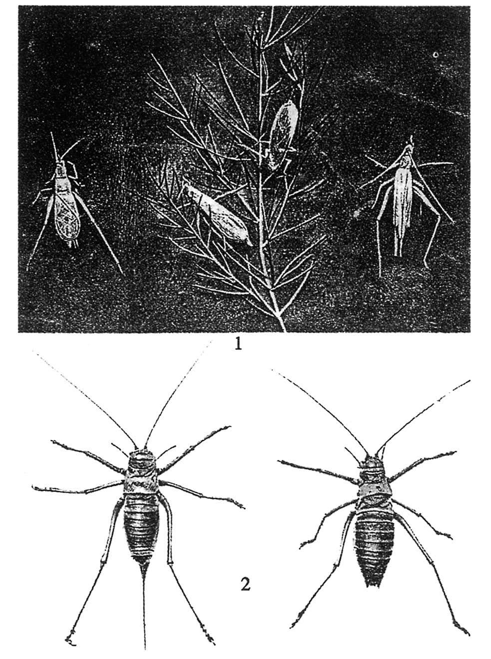 1.意大利蟋蟀 2.葡萄上的雌、雄距螽