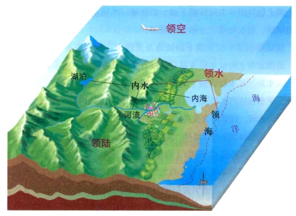 领土包括国家主权管辖下的一切陆地、水域及其底土和上空,即领土是由领陆、领水和领空三部分组成的。