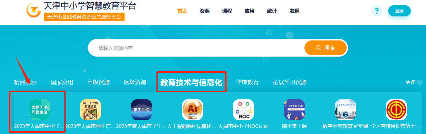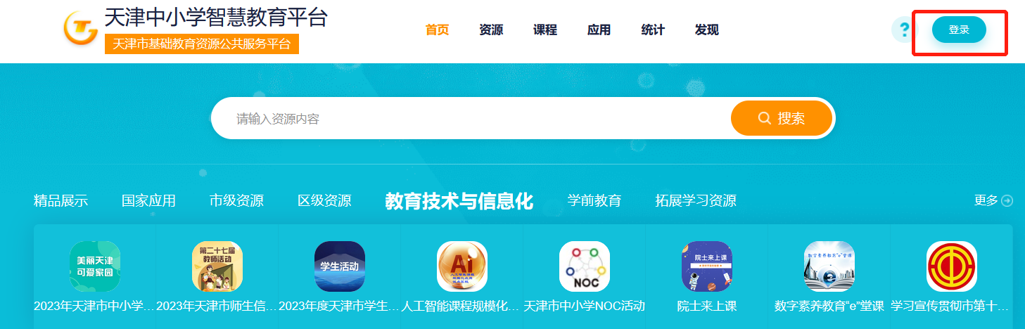 进入天津中小学智慧教育平台(http://basic.tj.smartedu.cn),点击右上角“登录”,使用个人账号密码登录平台。
