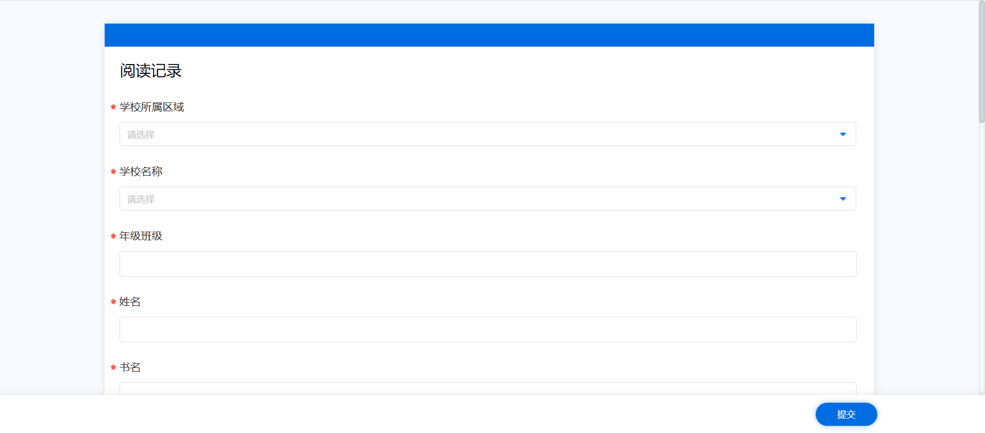 完成推荐书目/自选书目的阅读后,进入“阅读记录”模块,按要求上传阅读书目的记录信息。