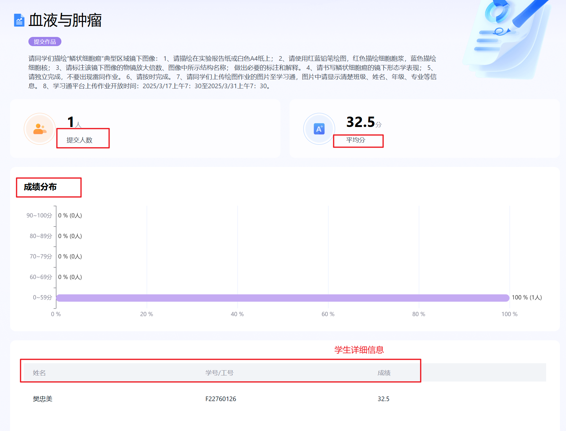 包括提交人数,提交学生详细信息,平均分,成绩分布,所属模式。