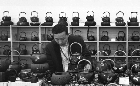 从炼铁炉生产出的粗制铁称为生铁,日本江户时期的铁壶就是以生铁为原料,加之传统的铸造工艺,通过后期打磨成型为茶壶(图2.6)。科学发现铁是人身体中造血的元素,人体无法直接吸收金属中的铁元素,二价铁离子是人体能够吸收的。食物中的铁是以三价铁离子的形式存在,经过胃酸与三价铁离子反应后,生成能够被人体吸收的二价铁离子。实验表明,铁壶煮水时能够释放有利于人体吸收的二价铁离子,饮用铁壶煮的水能够有效补充铁元素,这是铁壶煮茶对健康有好处的原因。