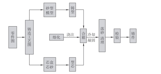 铸造是生产金属制品的一种生产工艺(图2.13)。将熔融的金属液体浇注在与零件形状相适应的空腔中,金属液体填满空隙形成想要浇注的形状。铸造分为砂型铸造、熔模铸造、金属性铸造、压力铸造和离心铸造等。砂型铸造的主要工序有:制造铸模、制造砂铸型、浇注金属液、落砂、清理等。砂型铸造的适应性强,尺寸和形状的灵活性强,不受重量和金属种类的限制,制作成本低,但铸造会存在砂眼、冷隔、浇注不足、气孔等缺陷。金属的成形方式还有:锻造、塑性成形、切削加工、焊接加工等,根据不同的金属制品的要求采用不同的生产工艺,可以更准确、更环保、更节约地达到其需求。