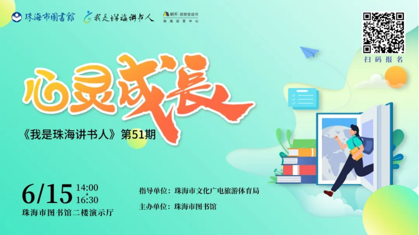 2024年6月15日14:00,《我是珠海讲书人》第51期将以“心灵成长”为主题在我馆二楼演示厅举办。