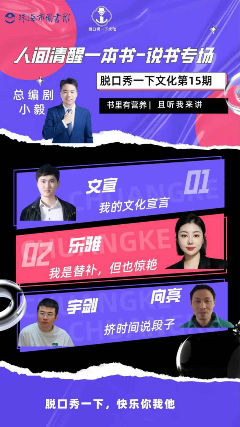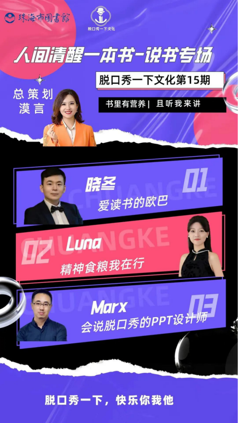 本次阅读分享为珠海市图书馆主办的公益活动,读者自愿报名,参与活动者被视为:默认活动中的照片可以用于常规宣传;如有不同意者,请在活动开始前跟主要负责人联系,谢谢您的配合。