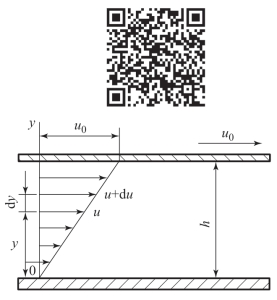 当液体流动时,由于液体与固体壁面的附着力及流体本身的黏性使流体内各处的速度大小不等。如图1-9所示,设上平板以速度u0向右运动,下平板固定不动。由于液体黏性的作用,紧贴下平板液体层的速度为零,而中间各液层的速度则视其距下平板距离的大小按线性规律变化。