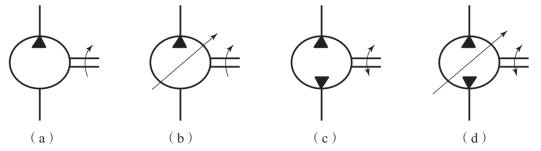 (a)单向定量液压泵;(b)单向变量液压泵;(c)双向定量液压泵;(d)双向变量液压泵