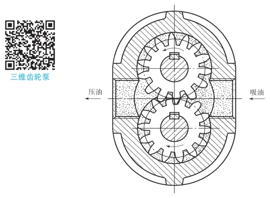 图2-6 外啮合齿轮泵剖面结构及原理示意图
