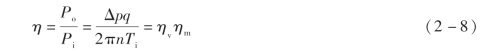 ①输入功率Pi。液压泵的输入功率是指作用在液压泵主轴上的机械功率,当输入转矩为Ti、角速度为ω时,有