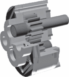 普通齿轮泵采用控制轴向间隙的办法提高齿轮泵容积效率。高压齿轮泵一般采用轴向间隙自动补偿装置的办法。