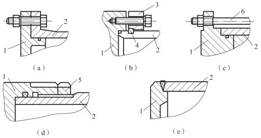 (a)法兰连接;(b)半环连接;(c)拉杆式连接;(d)螺纹连接;(e)焊接连接