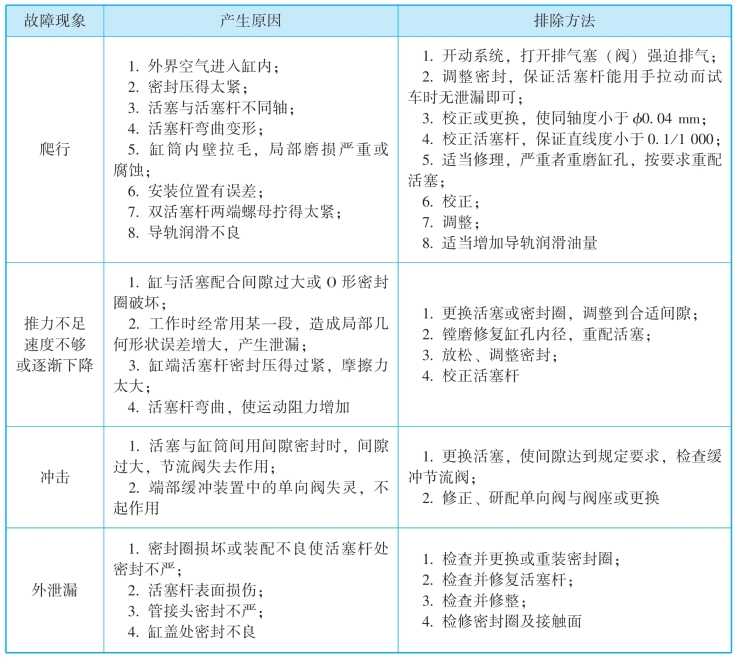 2.液压缸的常见故障及排除方法