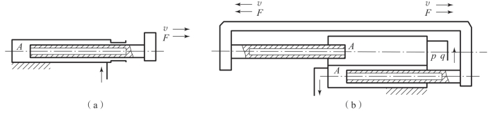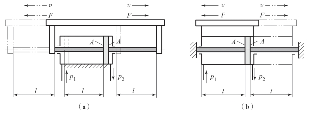 (a)缸筒固定式;(b)活塞杆固定式