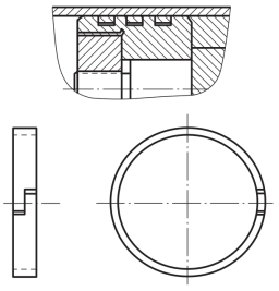 活塞环密封:如图3-14所示,通过在活塞外表面的环形槽中放置切了口的金属环实现密封。金属环靠弹性变形贴在缸筒内表面上,在高温、高压和高速运动场合有很好的密封性能。其缺点是制造工艺比较复杂。