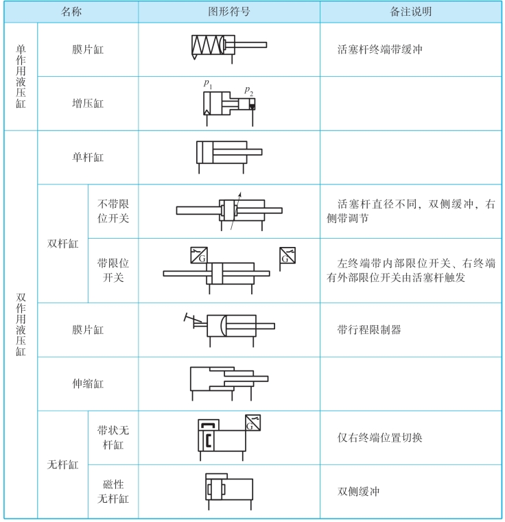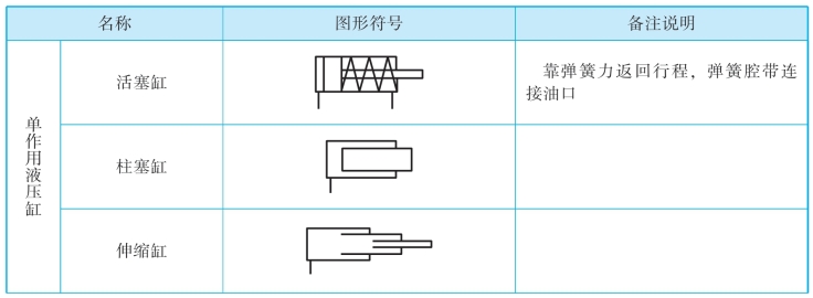 常见液压缸的类型及图形符号见表3-1。
