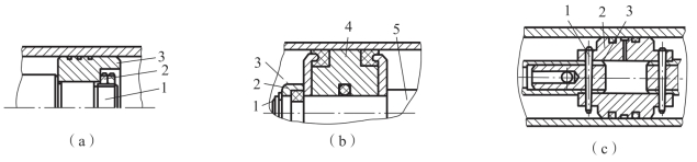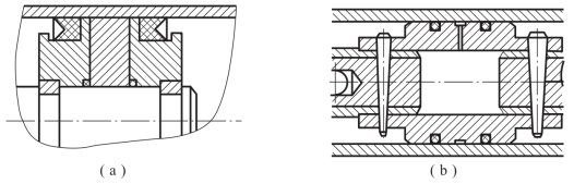 如图3-15(b)所示,使用了O形橡胶圈。该种密封磨损后能自动补偿且密封性能会随着压力的加大而提高,结构简单、应用广泛。