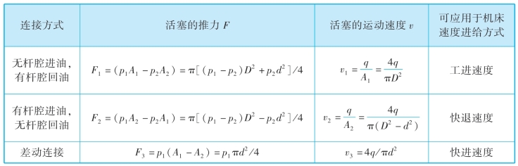 表3-2 单杆液压缸活塞的推力与运动速度