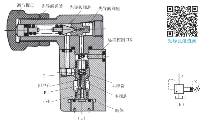 图5-16所示为先导式溢流阀的结构及图形符号。