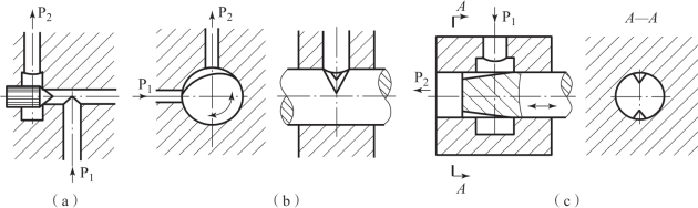 (a)针阀式;(b)偏心槽式;(c)轴向三角槽式