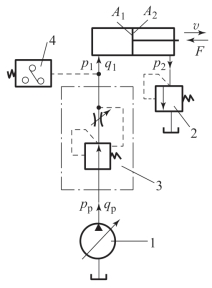 1—变量泵;2—溢流阀;3—调速阀;4—压力继电器